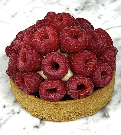 Raspberry and pistachio tartlet